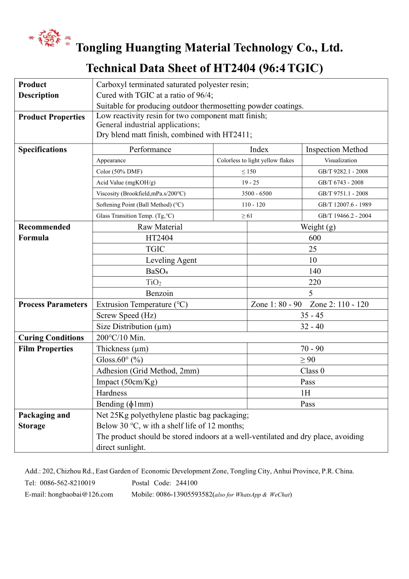 TGIC curing,high reactivity component for dry blend Matte finish,general industrial applications,combined with HT2404. |