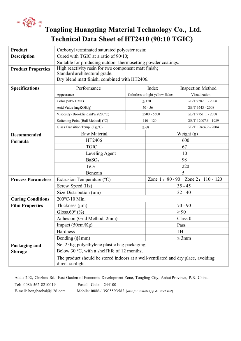 TGIC curing,low reactivity component for dry blend Matte finish,economical,combined with HT2412. |