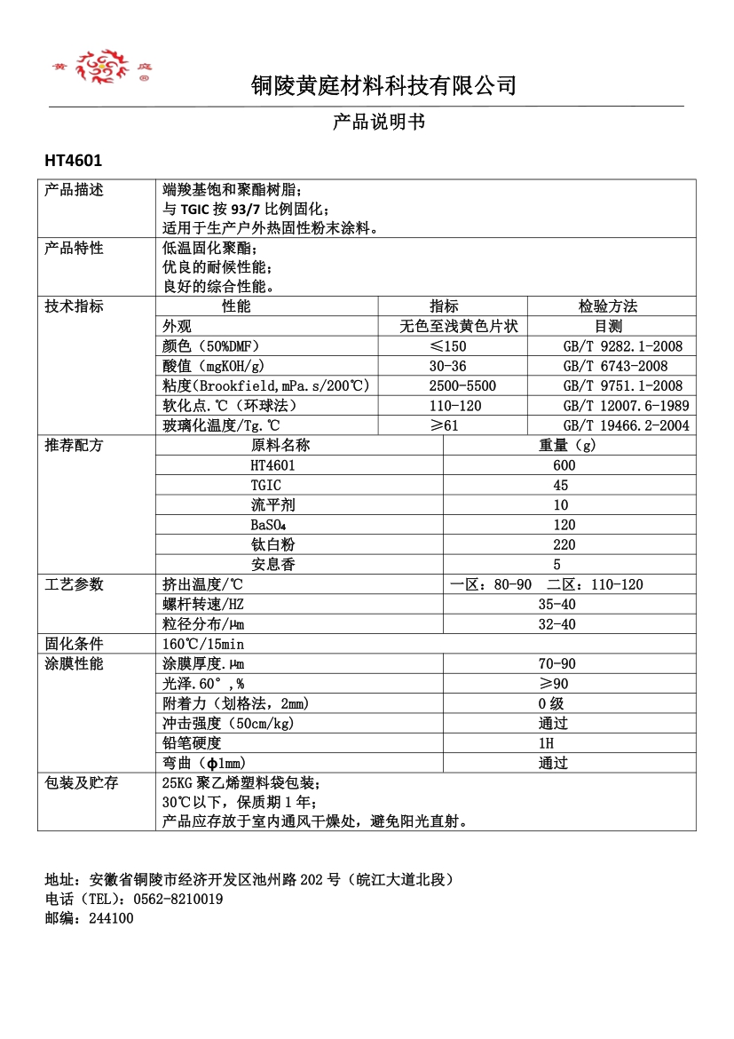 HT4601 93/7 30-36 2500-5500 61 160/15 低温固化聚酯