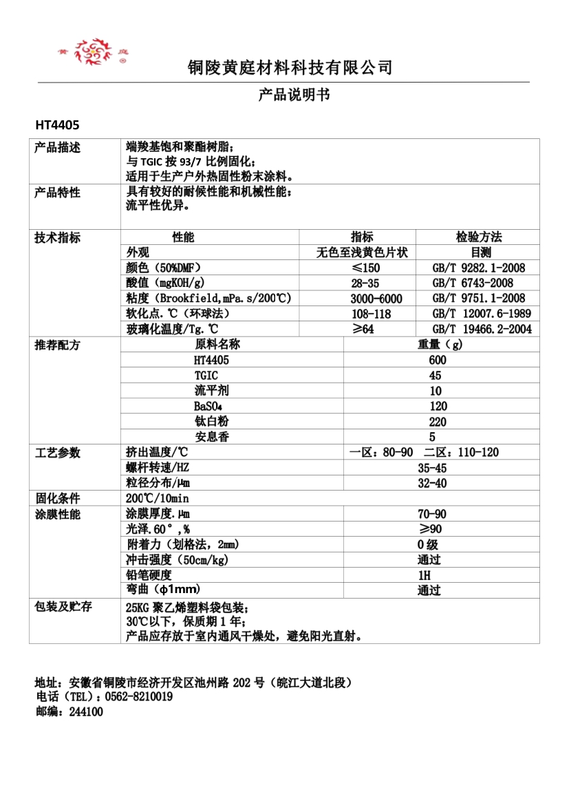 HT4405 93/7 28-35 3000-6000 64 200/10 具有较好的耐候性能和机械性能,良好的流平性能。