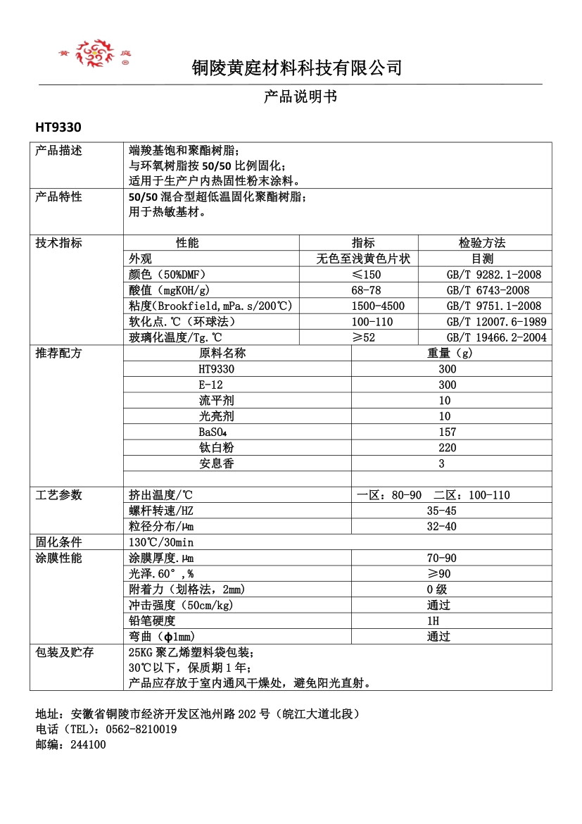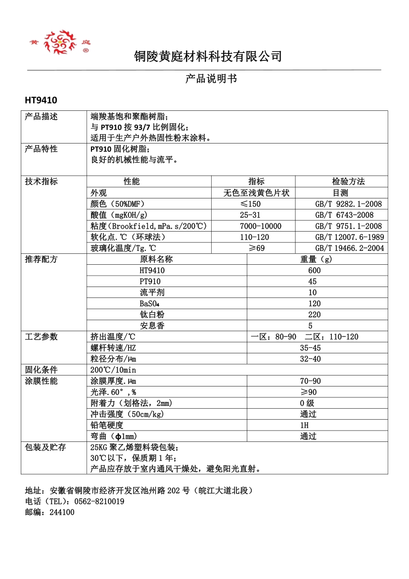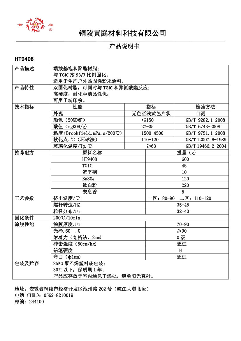 HT9408 93/7 27-35 1500-4500 63 200/10 双固化树脂,可同时与TGIC 和异氰酸酯反应, 高硬度,耐化学药品性优,可用于转印粉。