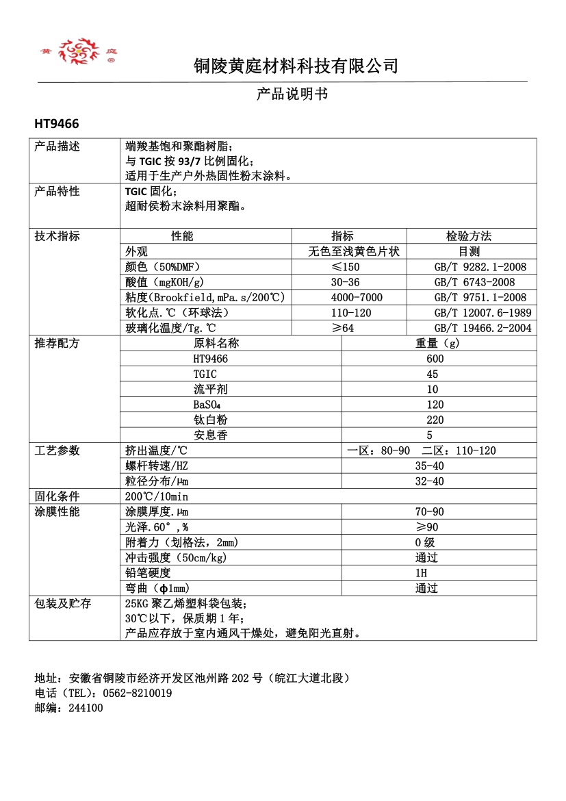 HT9466 93/7 30-36 4000-7000 64 200/10 TGIC 固化超耐候粉末涂料用聚酯。