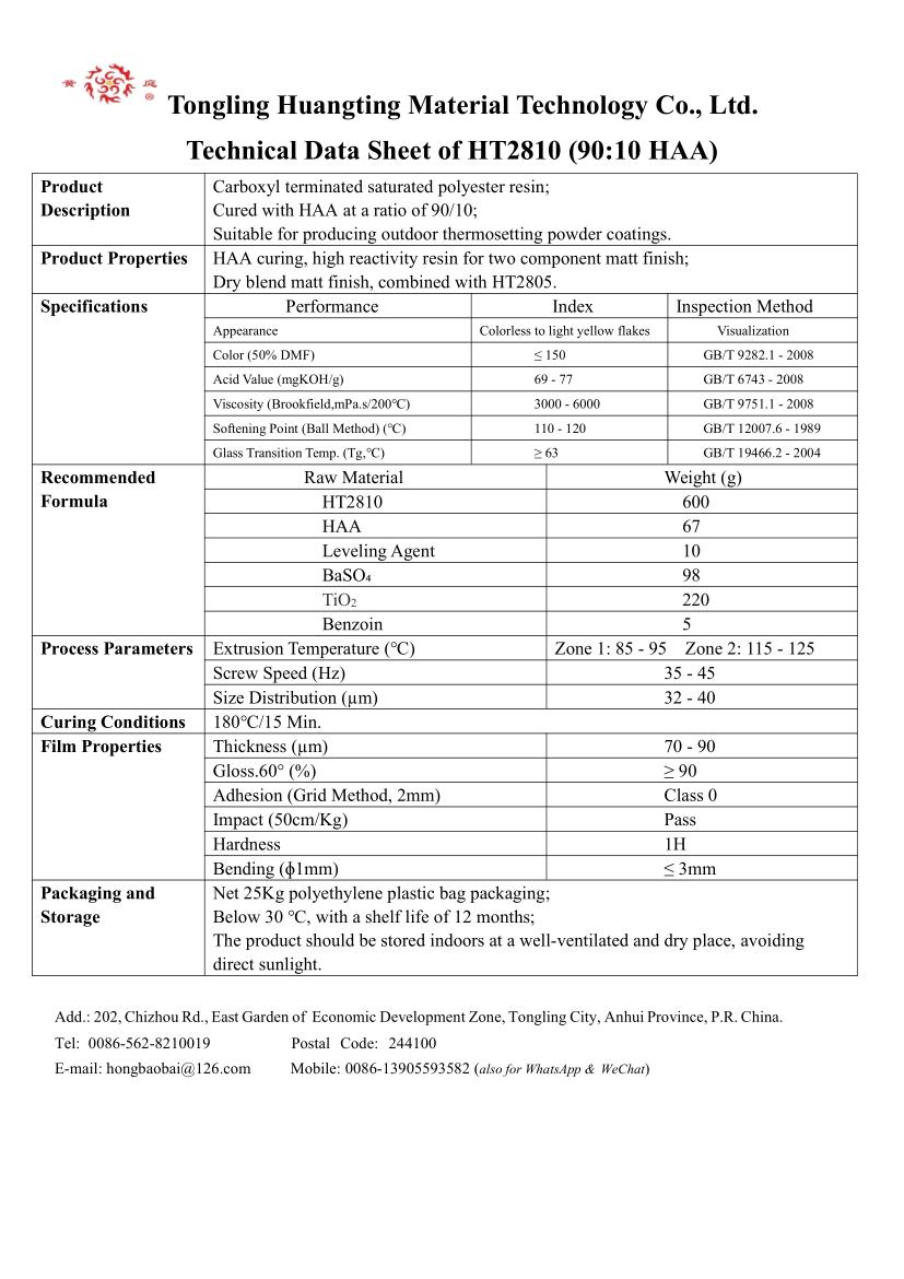 TGIC curing,low reactivity component for dry blend Matte finish,general industrial applications,combined with HT2411. |