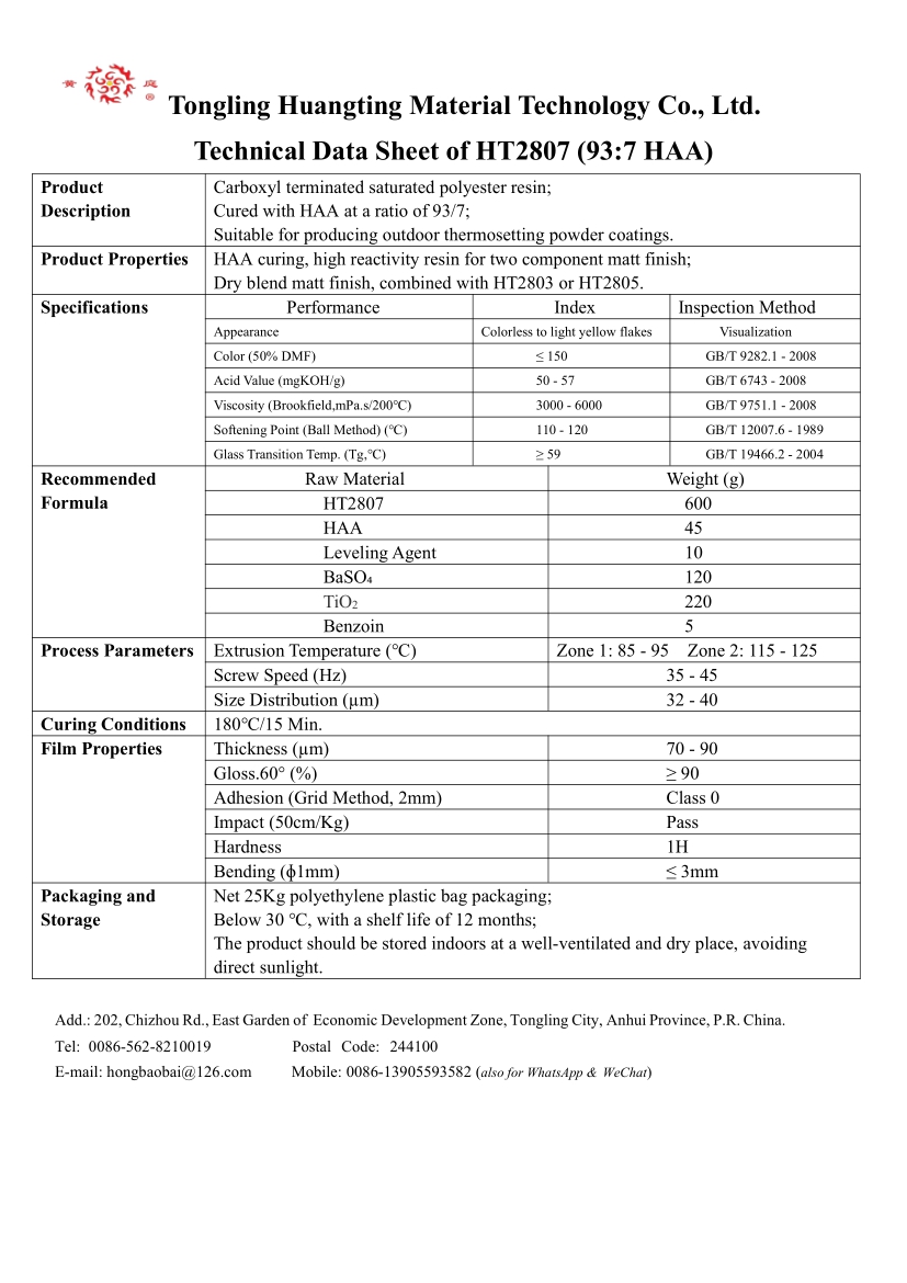 TGIC curing,high reactivity component for dry blend Matte finish,general industrial applications,combined with HT2404. |