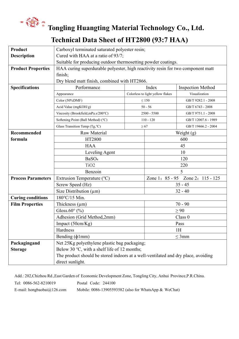 TGIC curing,low reactivity component for dry blend Matte finish,economical,combined with HT2412. |