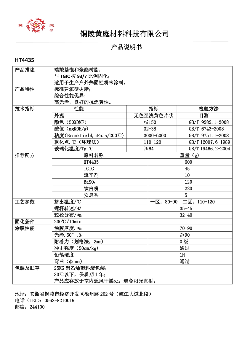 HT4435 93/7 32-38 3000-6000 64 200/10 高光泽,综合性能优异,良好的抗泛黄性。